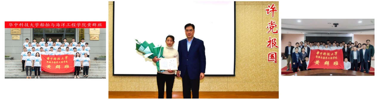 2018年12月,船海学院率先开展“黄群班”荣誉班级创建活动,通过学习和传承黄群精神,在学生中把课程思政教育的功能潜移默化、润物无声地铺开。在2019年12月学校“黄群班”争创仪式上,学校党委书记邵新宇强调:一学黄群精神,做华中大“红色基因”的传承者;二创荣誉班级,做华中大“大团结文化”的践行者;三担时代责任,做华中大“卓越目标”的追求者。