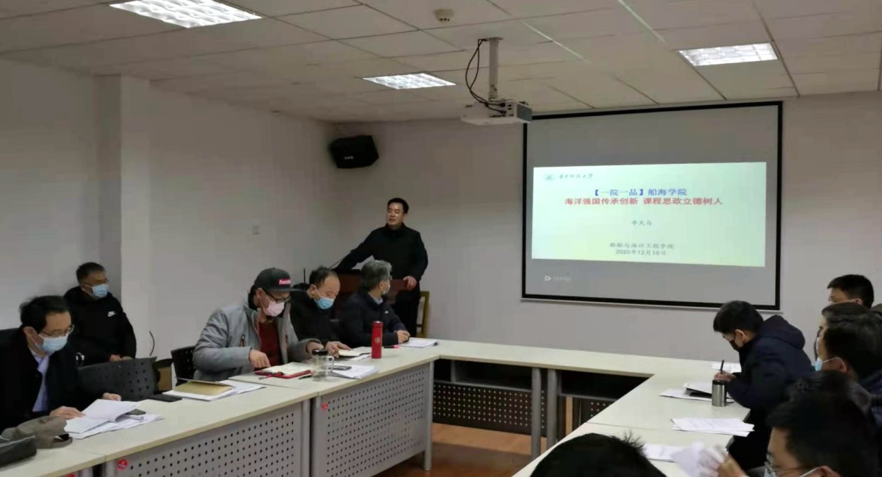 2020年12月4日,在太阳成集团tyc33455cc2020年度“一院一品”课程思政建设专题研讨会上,船海学院汇报了课程思政工作,得到了学校马建辉副书记的肯定。为落实学校课程思政建设专题研讨会精神,学院于2020年12月10日召开了全院教职工大会,学院全体党政班子成员参加,王作红书记主持会议,解德院长讲话,对课程思政工作作了再宣传、再部署、再推进,从设计性、系统性、计划性维度建设课程思政,将课程思政贯穿办学全过程,形成一体化育人合力、一体化育人载体、一体化育人保障,构建起课程思政立体场域,构筑师生成长发展共同体,实现育人资源共享、育人力量汇聚。