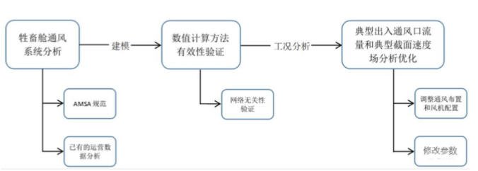 该作品结合已有牲畜船通风系统设计方案和AMSA设计规范,提出大型牲畜船通风系统设计方案。对大型牲畜船通风系统进行适当简化,采用CATIA软件建立三维模型并根据具体的工况采用STAR-CCM+软件对该模型进行数值模拟,并采用有限体积法,将待解的微分方程对每个控制体积积分并得到关于各节点上各因变量的离散方程。经处理后给出舱室内典型截面的速度场、温度场等物理参数分布,分别针对不同位置给出相应的参数分布图,以此来分析牲畜舱室围栏区域的最低换气次数和最低风速是否达到标准,并对不满足规范要求的通风系统局部进行优化。