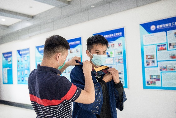 在学院楼,毕业生们对导师以及辅导员们指导和关心表示感谢,辅导员帮助同学们穿上学位服,导师们则为毕业生一一拨穗,恭喜其顺利完成研究生阶段的学业,祝愿其在后续的工作中再创辉煌。毕业研究生与同学以及老师们合影,记录下这个珍贵的时刻,分享彼此的喜悦!