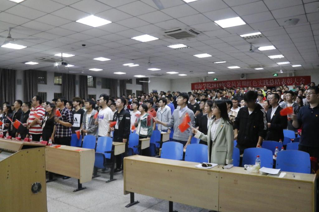 大会最后,全体起立合唱《我和我的祖国》。在铿锵嘹亮的歌声中,船海学院2019年党员暑期红色社会实践表彰总结大会圆满结束。