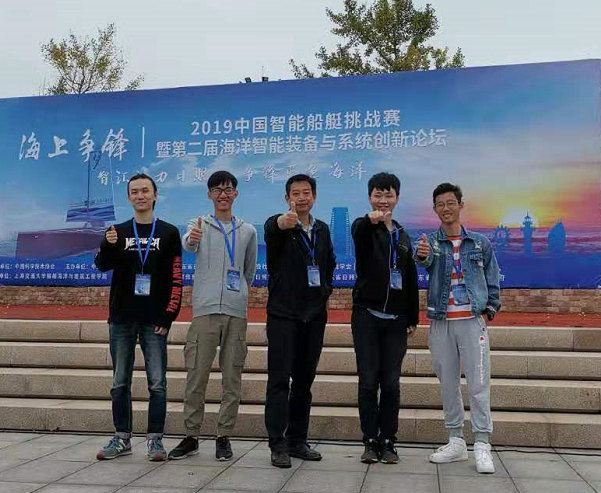 我院智能无人船团队在轮机工程系唐国元老师带领下,率研究生同学一名及2018级轮机工程本科生同学三名,经过三个月紧张筹备,先后克服了信息弱连接、环境强干扰、识别有迟滞等技术难题,并携“飞电绝影”号智能无人船,与国内众多著名高校及行业内专业公司的智能无人船团队同台竞技,在比赛当天风雨交加、浪高流急的情况下,表现稳定,并战胜众多强劲对手,成功获得A/B组亚军,并获得赛事二等奖。