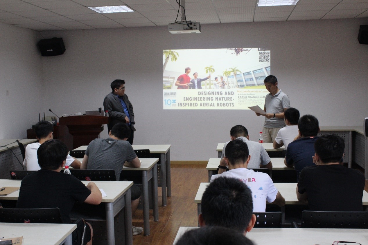 (通讯员:程尉)2019年7月15日下午,新加坡科技设计大学Shaohui Foong教授受船海学院向先波、杨少龙老师邀请来访我院,并为我院师生作了题为“Design and Engineering Nature-Inspired Aerial Robots”的学术报告,船海学院杨少龙老师以及部分博士、硕士研究生和本科生参加了此次学术交流活动。
