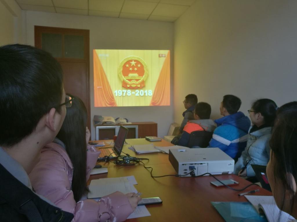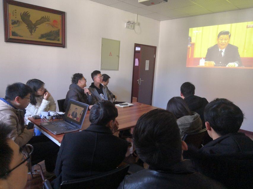 12月18日上午10点,太阳成集团tyc33455组织全体师生观看十九大开幕式直播,以东二楼学院会议室作为主会场,学院领导班子、全体机关干部、在岗教职工、实验室员工、辅导员参加;各学生支部结合实际设分会场收看网络直播,学生社区红色家园设本科生分会场,各研究生支部在实验室集中观看;会后各会场均组织了座谈,师生共议改革开放40周年。