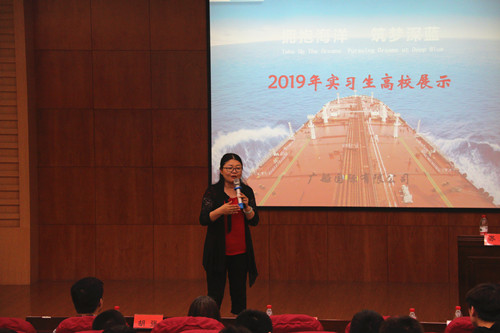 广船国际有限公司人力资源部副部长曾令清为同学们介绍了广船国际的就业环境和就业背景,并表示非常欢迎同学们来到广船实习、就业、发展事业。