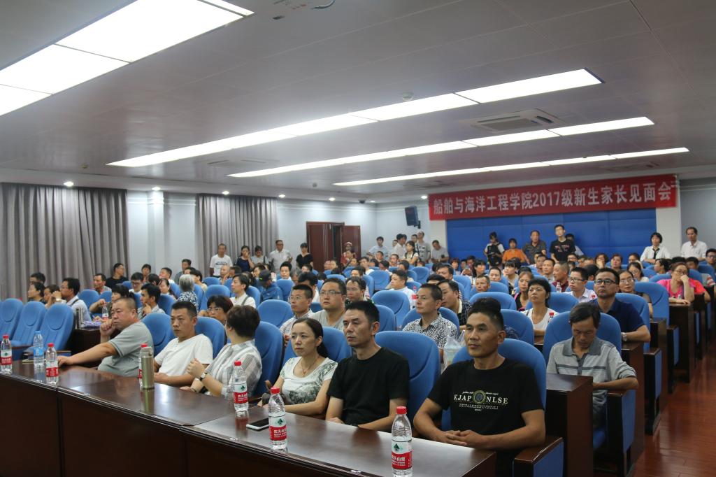 9月1日晚,我院2017级新生家长交流会在武钢联合实验室四楼报告厅召开。出席本次活动的领导和老师有:学院党委书记萧莉老师,院长解德教授,副院长李维嘉教授,副院长程远胜教授,院党委副书记谢宇翔老师,船舶与海洋工程系主任李天匀教授,轮机工程系主任徐国华教授,班主任张正艺和刘加一老师。交流会由2017级辅导员曹金梅老师主持。