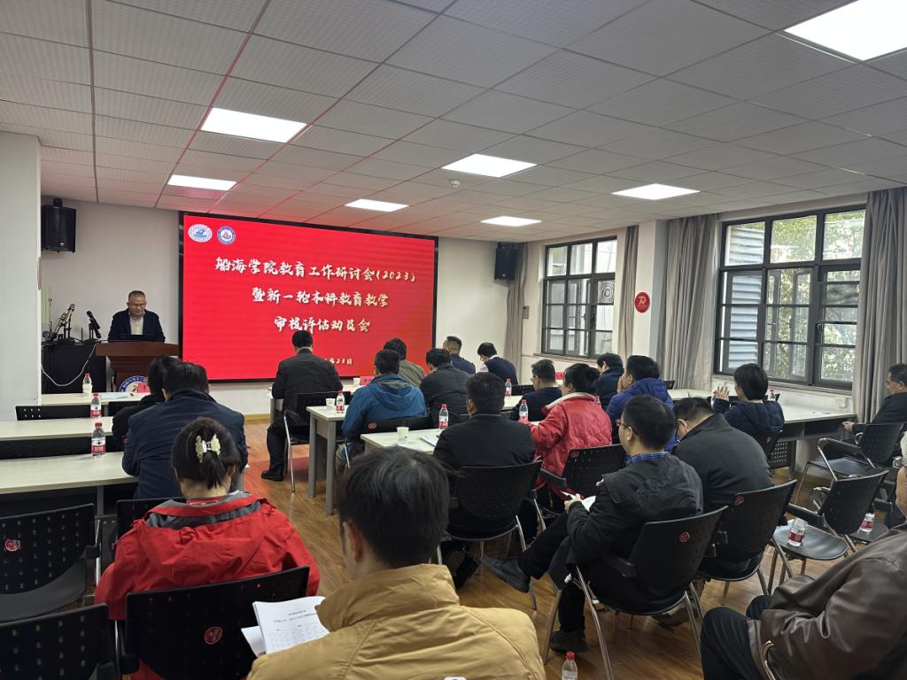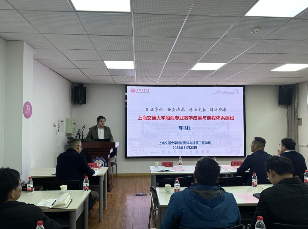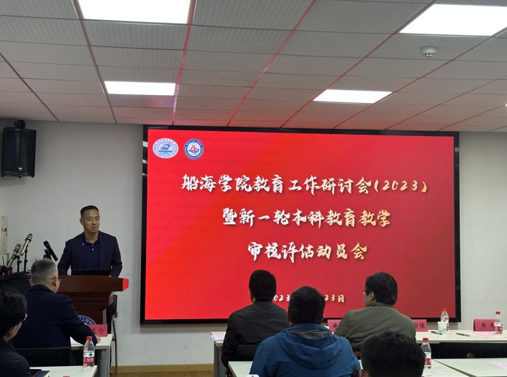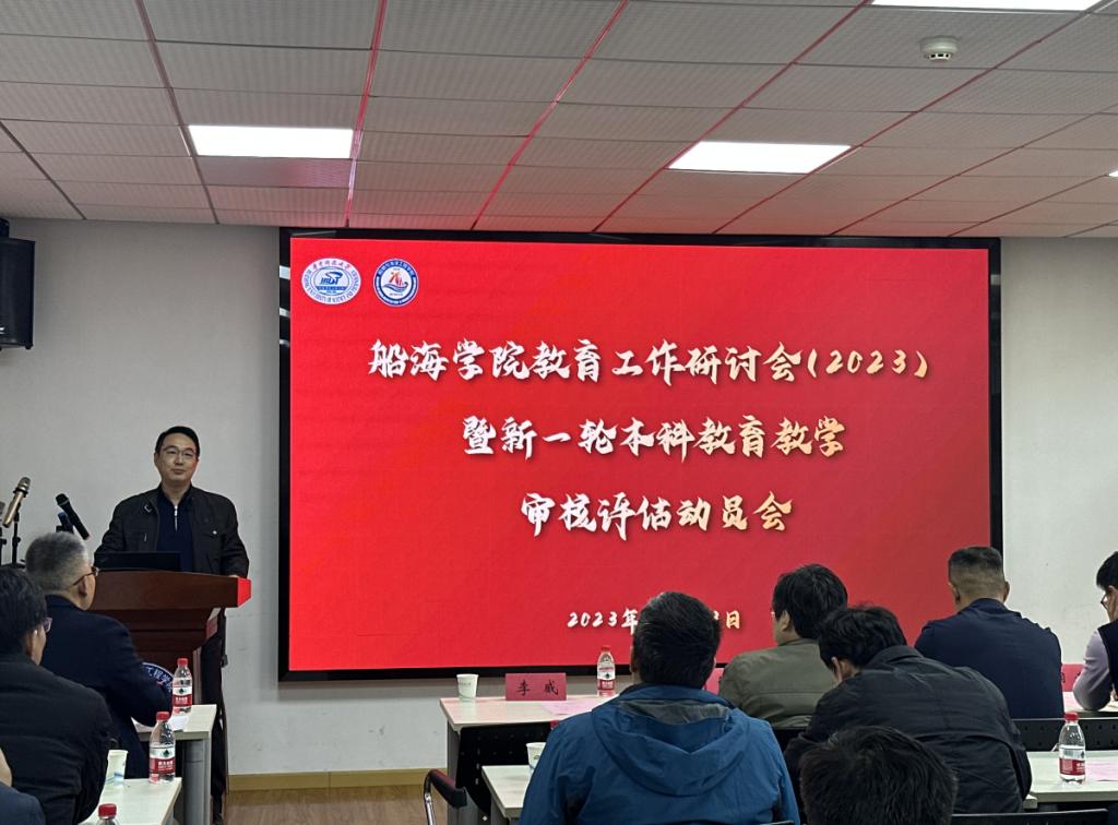 为贯彻习近平总书记关于高等教育的重要论述,落实太阳成集团tyc33455cc教育工作研讨会(2023)暨新一轮本科教育教学审核评估精神,聚焦立德树人根本任务,部署新一轮本科教育教学审核评估迎评工作。11月23日,船海学院召开了学院教育工作研讨会暨新一轮本科教育教学审核评估动员会,会议邀请上海交通大学船舶海洋与建筑工程学院党委副书记薛鸿祥教授作专题报告。本科生院教务工作办公室副主任周奇、学院党委书记顾国强、院长李威出席,全体教职工和部分学生代表参会。会议由副院长李天匀主持。