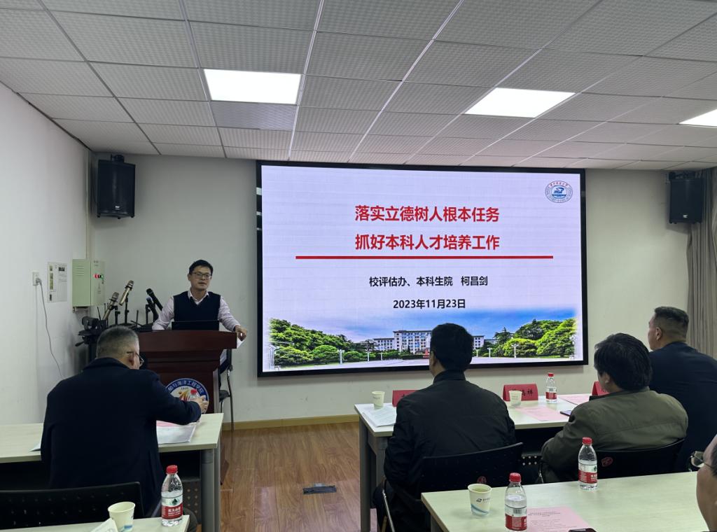 周奇介绍了学校新一轮本科教育教学审核迎评工作部署,指出了目前院系努力的方向。他深入解读了新一轮审核评估的背景与内涵,并从本次审核评估的指导思想、评估类型与指标体系、组织机构和任务分工、时间安排和工作要求、保障措施等方面传达了学校对于审核评估工作的具体工作安排。