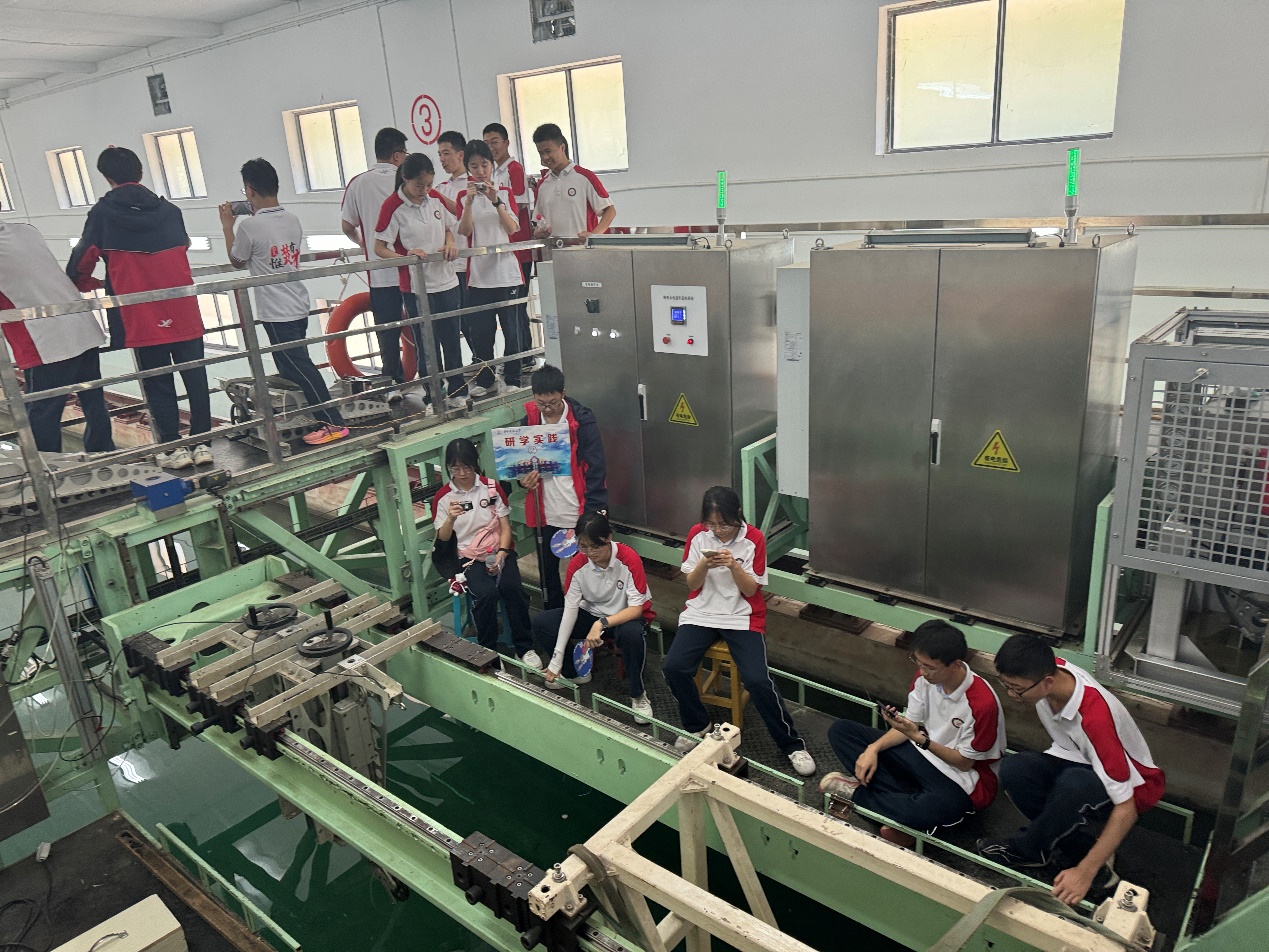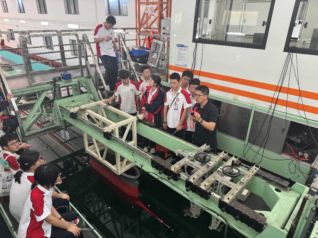 2025年5月13日,襄阳一中高一年级共约150多位师生来我院实验中心船池实验室开展科普及研学实践活动。我院宋磊高级工程师、李阳工程师和杨翔老师带领来宾师生们开展科普研学活动,活动内容包括船池实验室简介、船型及其推进系统简介、螺旋桨敞水试验演示等。