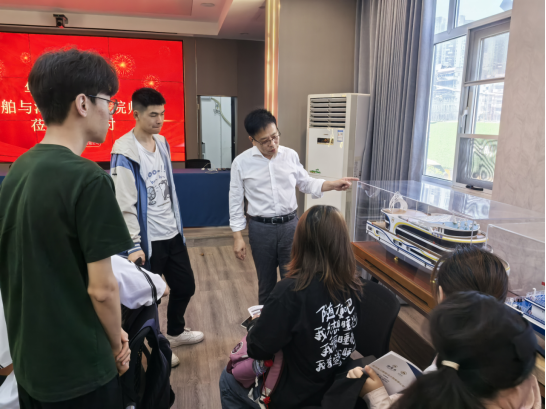 7月3日,我院师生齐聚长江船舶设计院,开展了与企业导师的见面会。该公司副总经理、我院校友徐强对到访师生表示热烈欢迎,并亲自带领同学们前往公司展区参观了该公司设计的多艘代表性船舶模型,详细介绍了不同船舶的设计理念、技术特点、应用场景及研发过程中的创新突破。随后详细介绍了该公司的概况、正在承担的国家重大科技任务以及取得的突出成就。