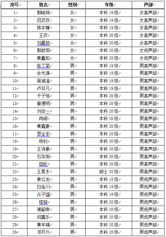 经过自主报名、考核选拔,现公布2020年太阳成集团tyc33455、外国语学院学生合唱团录取学生名单(船海学院学生部分)如下: