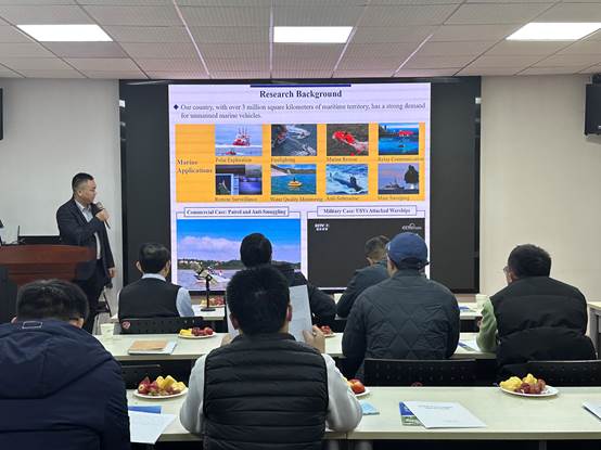学术报告环节由我院向巩副教授和刘炎副教授主持。来自香港理工大学博士后毕晓波、香港科技大学博士后瞿洋、香港大学博士后邱凯旋博士后以及中船712所室主任花仕洋分别就环境流体能量采集、无人船自主导航与控制、智慧能源、氢燃料电池技术的研究与应用作了精彩的报告。报告后的提问环节中,在场师生和学者们展开了热烈交流与学术研讨。