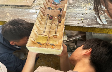 船模组装完成后,同学们还参与了激烈的船模水池竞赛。各小组精心策划航行方案,通过遥控器熟练控制船模的运动。比赛现场扣人心弦,充分展示了学子们的团队协作精神和对船舶与海洋工程专业的深厚热爱。