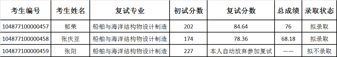 2017年船海学院公开招考博士研究生复试成绩及拟录取信息公示