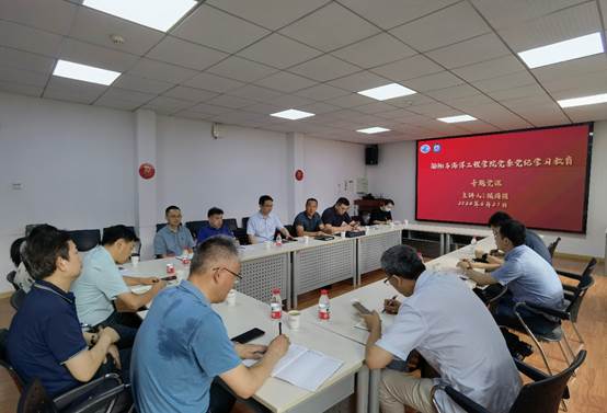 学校党纪学习教育督导组列席会议,船海学院党政领导班子、党支部书记、系主任、实验中心主任、院长助理、学工组参会。