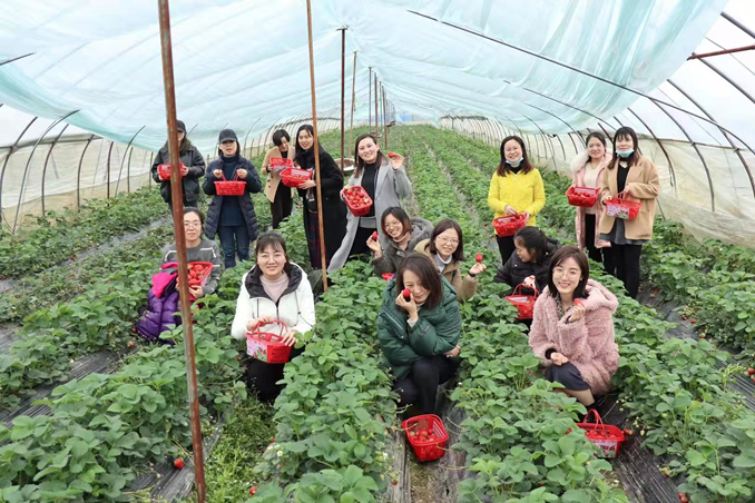 第一站,前往草莓园采摘草莓。大家边摘边聊,笑声回荡在草莓地。满棚草莓芳香,仿佛跌进春天酸甜的梦里。