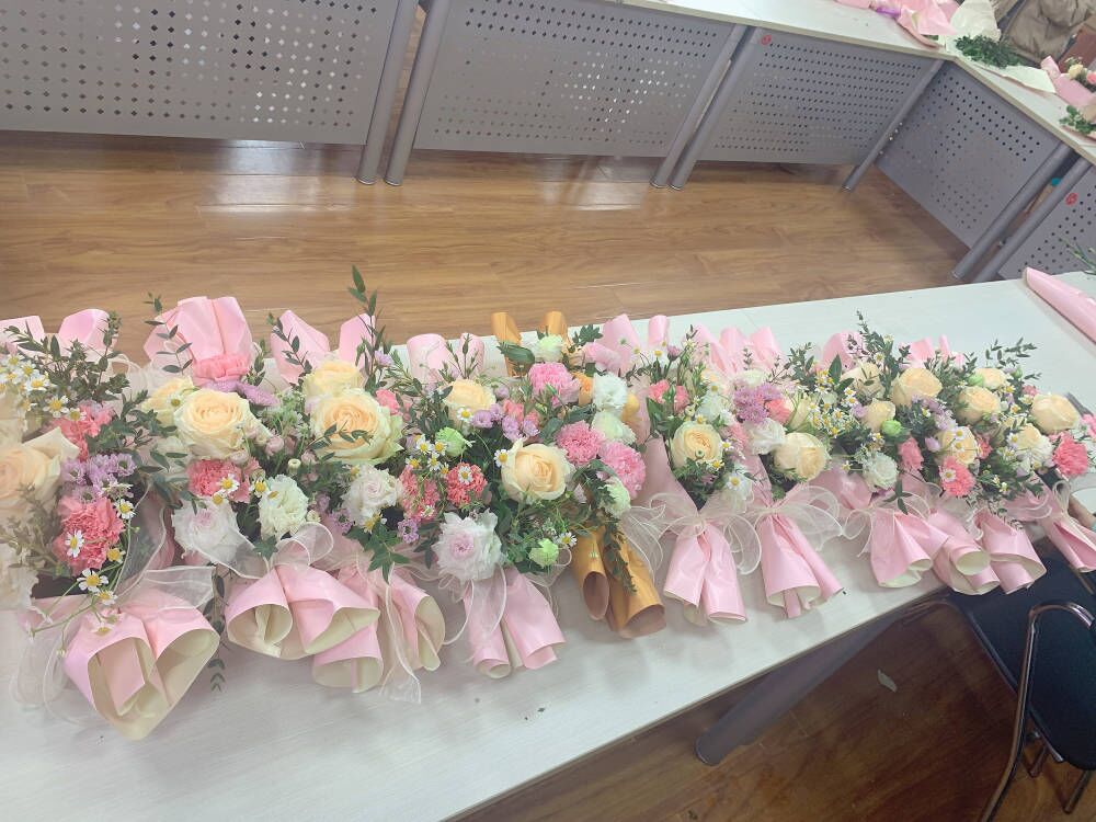 插花作品完成后,大家手捧鲜花,相互送上节日祝福,现场气氛十分活跃。此次插花活动融合了大家丰富的想象力、创造力,让女老师们在快节奏的工作、生活中释放压力、放松心情、感受艺术的魅力,营造出朝气蓬勃、团结奋进、健康和谐的工作生活氛围。