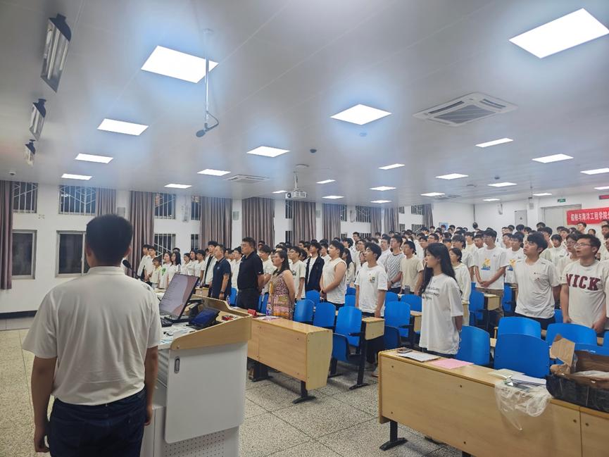典礼在庄严的氛围中拉开序幕。全体人员首先观看了专题视频《红色档案 | 36岁朱德入党申请被拒绝 为求信仰踏上万里寻党路》。视频通过讲述朱德同志放弃高官厚禄,追求真理的感人历程,深刻诠释了共产党人的初心与信仰,激励学员坚定理想信念。
