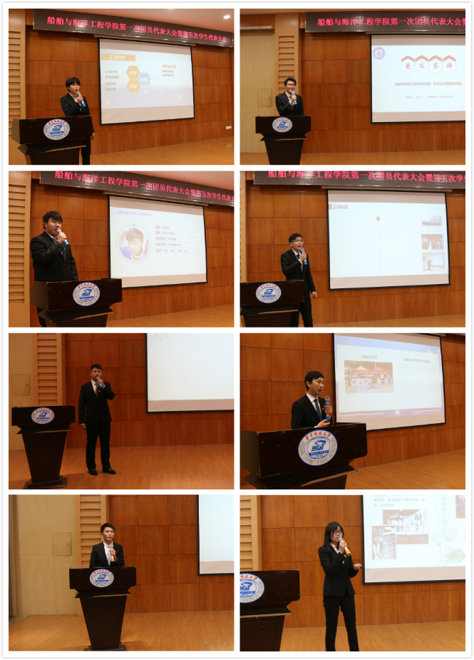 太阳成集团tyc33455分团委副书记徐航代表第十届分团委作2017年度工作报告,学生会主席周智毅代表第十届学生会作2017年度工作报告,研究生会主席闫俊平代表研究生会作2017年度工作报告,学生会副主席郭晓冉作2017年提案报告。