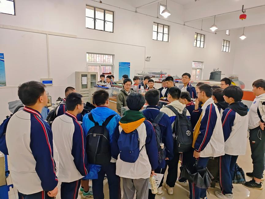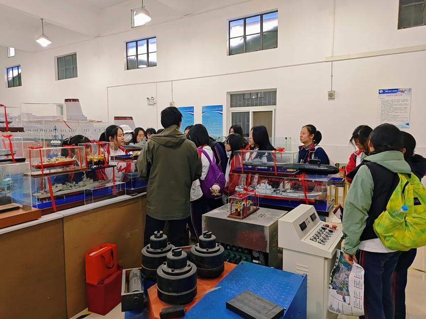 陈浩老师在模型展厅为学生们讲解,带领学生了解船舶科技的历史和发展。并深入学习了船舶制作过程,了解船舶的设计原理和建造工艺。