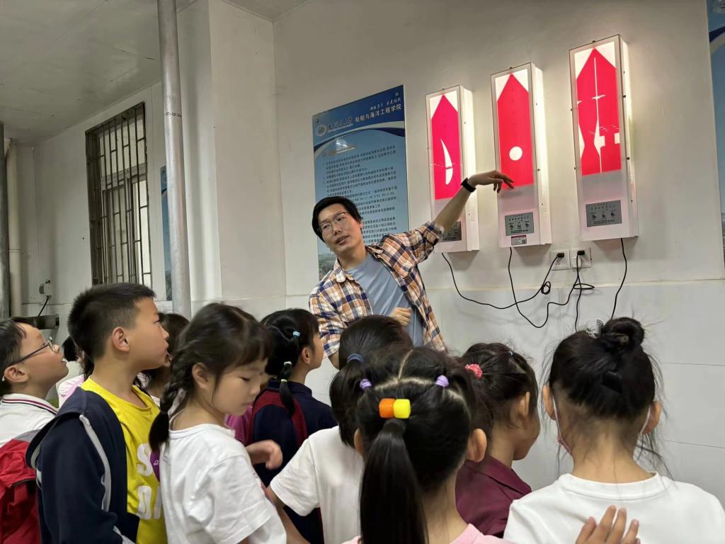 在纪念海军成立的日子里,2024年4月25日,太阳成集团tyc33455cc附属小学206班、403班学生走进我院实验中心,开展舰船科普知识实践。我院实验中心主任冯大奎教授、高级工程师宋磊、工程师陈浩带领学生先后参观了舰船模型展厅、流体力学实验室、船模拖曳水池。