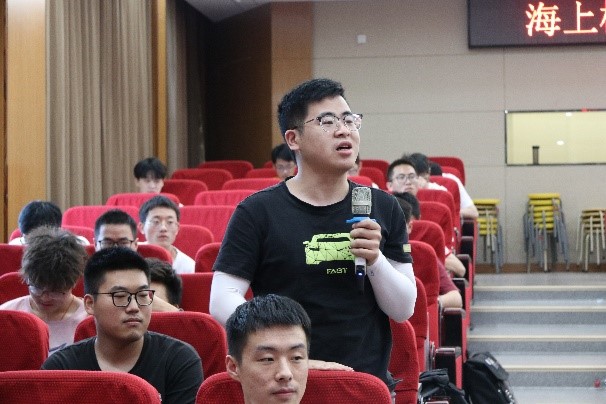 最后,张锦岚以习近平总书记对新时代青年的寄语为结语:“新时代中国青年要继承和发扬五四精神,坚定理想信念,站稳人民立场,练就过硬本领,投身强国伟业,始终保持艰苦奋斗的前进姿态,同亿万人民一道,在实现中华民族伟大复兴中国梦的新长征路上奋勇搏击”来激励在场学生,提出了殷切期望:“希望同学们为维护国家尊严、领土统一,为早日实现海洋强国目标而努力学习,勤奋拼搏!”