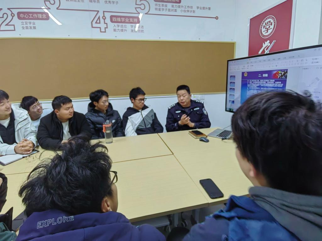 讲座结束后,熊警官与靳丰富老师带领班级安全员深入学生宿舍,为每个宿舍发放发诈骗宣传单,普及反诈骗知识。