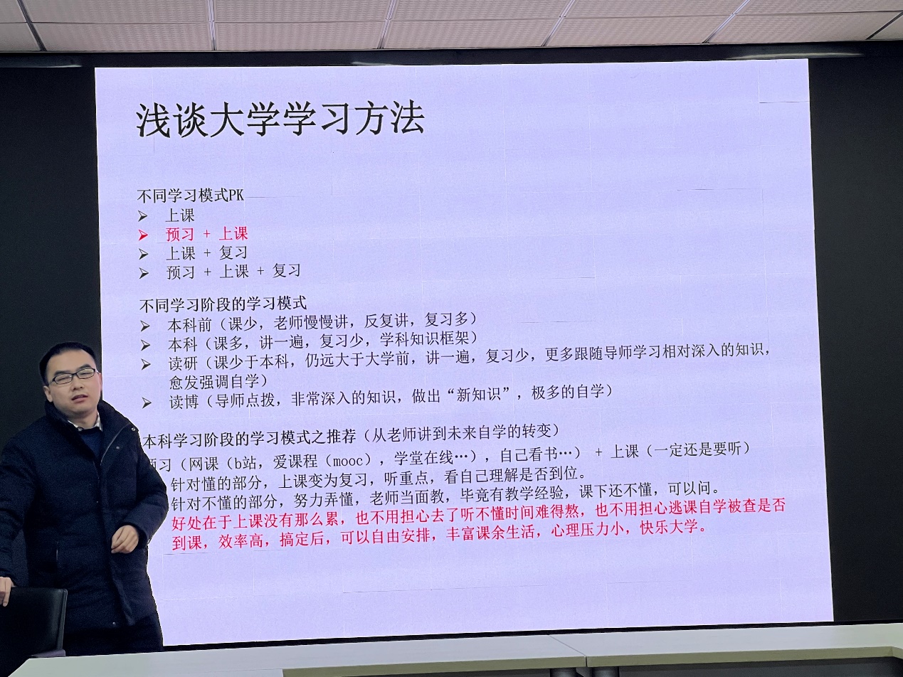 船卓2301班为提升同学们的学习兴趣,鼓励同学们瞄准科技发展趋势进而学以致用,在寒假期间开展了为期两周的科创训练营,教师班主任刘敬喜作了《如何高质量度过大学生活》的专题报告,给同学们传授了9条锦囊妙计。