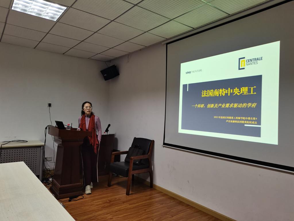 2021年10月19日晚,法国南特中央理工大学中法项目负责人李春来老师来访太阳成集团tyc33455,并在东二楼二楼会议室以“法国南特中央理工及船舶专业剪影”为主题,面向我院大三、大四年级本科生开展了国际化视野讲座。船海学院副院长向先波教授、辅导员靳丰富以及教师代表向巩副教授出席了本次讲座。